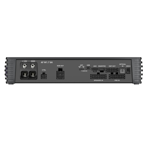 El Audison Forza AF M1.7 bit combina un potente amplificador de clase D con tecnología DSP de vanguardia. Este amplificador proporciona 600 W RMS a 4Ω, 1000 W a 2Ω y 1200 W a 1Ω, igual que el probado Forza AF M1D, pero añade un potente DSP de 24 bits y 96 kHz. El software bit Drive para el AF M1.7 bit incluye algoritmos específicos para optimizar el rendimiento del subwoofer en el coche. El DSP proporciona ecualización, crossover, gestión del retardo temporal, ajustes de nivel y sonoridad dinámica. El AF M1.7 bit también incorpora la exclusiva función “Bass-Magnifier”, que maximiza la salida de bajas frecuencias en el habitáculo para lograr una experiencia de escucha envolvente y una respuesta dinámica realista. Admite 8 canales de entrada y hasta 12 utilizando la tarjeta opcional F4IN con capacidades flexibles de enrutamiento y mezcla a través del software bit Drive. Incluye el circuito Universal Speaker Simulator (USS) para una integración perfecta con los sistemas de audio OEM. El AF M1.7 bit es compatible con el receptor Bluetooth de alta resolución B-CON y su aplicación B-CON go para control remoto desde un smartphone. La compatibilidad se extiende a los nuevos mandos a distancia DRC MP CAN y DRC AC. El AF M1.7 bit es ideal para los entusiastas del car audio que buscan una calidad de sonido excepcional y funciones de control avanzadas.